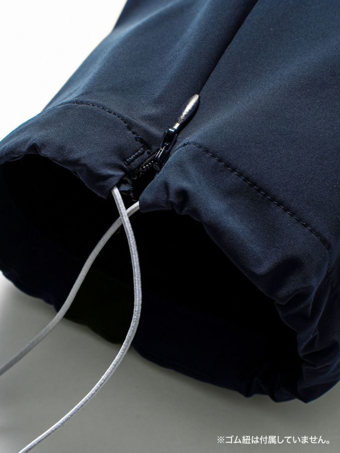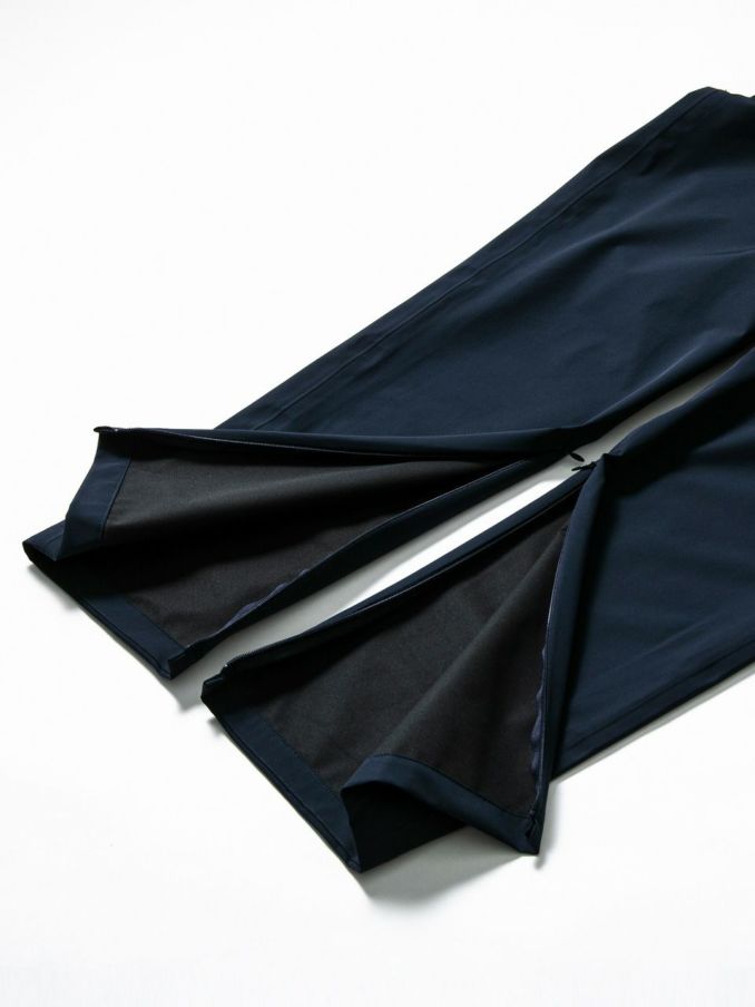 裾口は内側にファスナーを忍ばせ、靴を履いた状態でも履けるよう広げることができます。