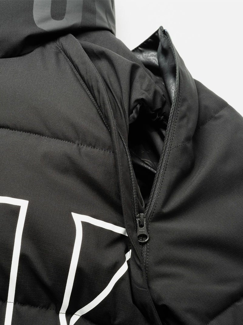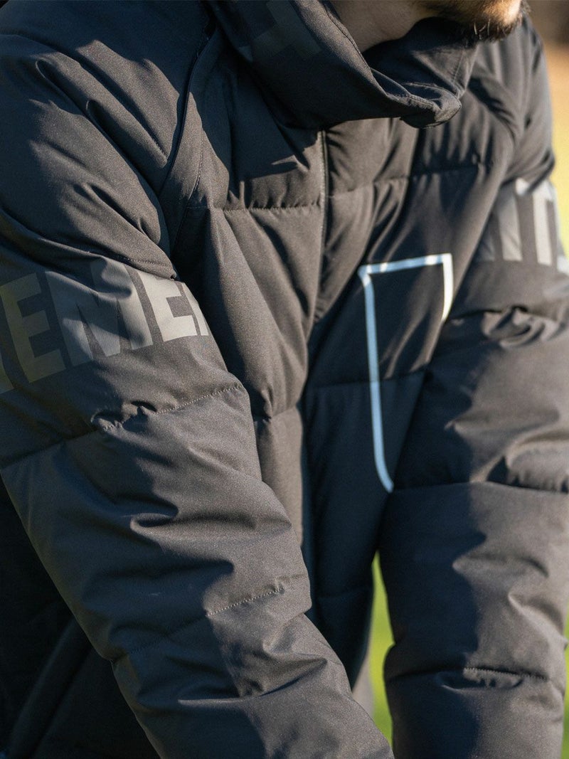 特殊生地とボリューム感のある中綿で体温低下を防ぐ、優れた保温性と防風性。