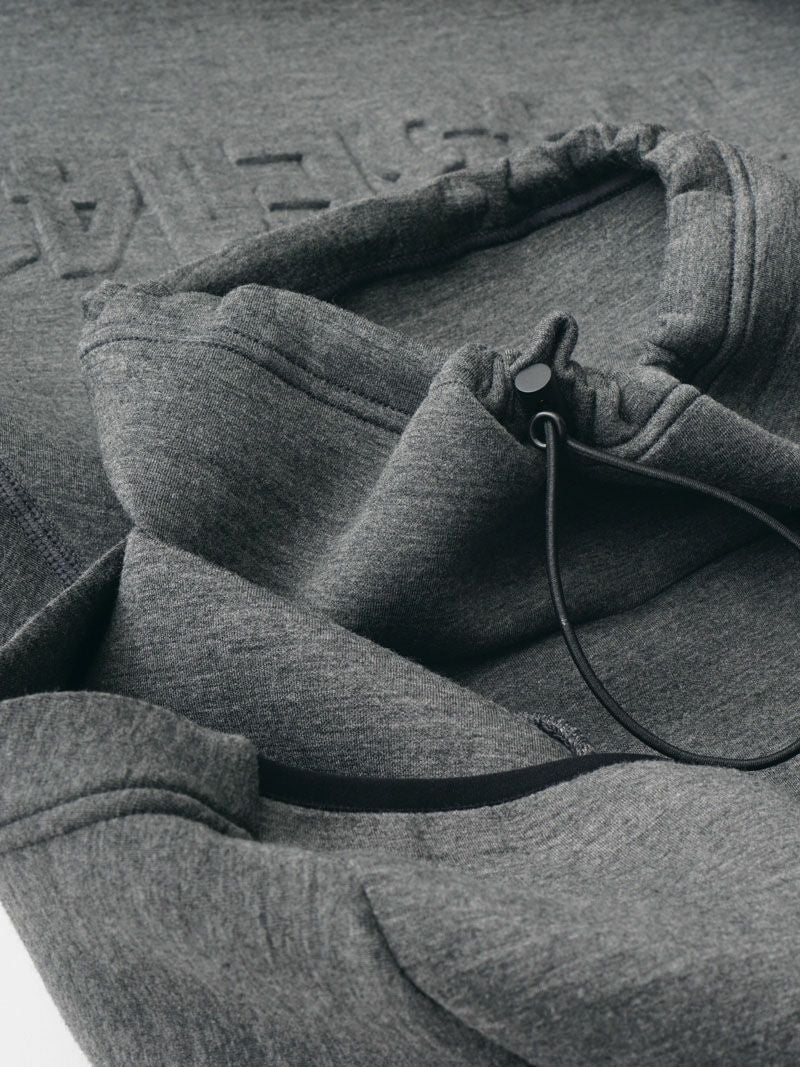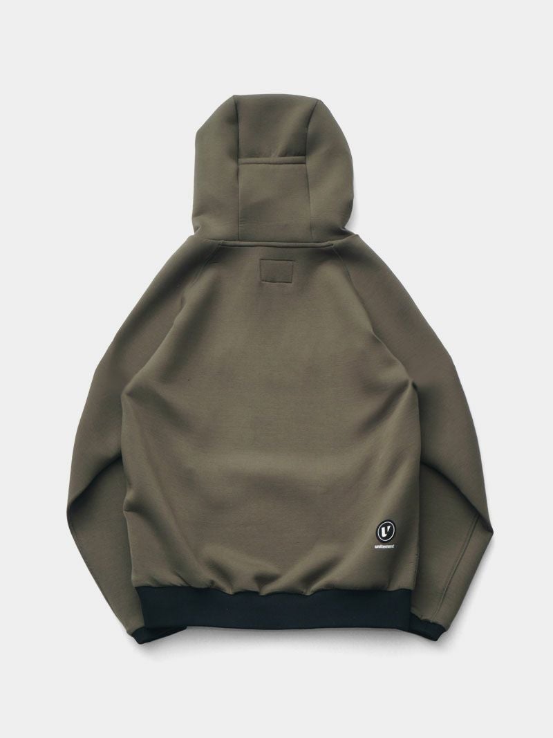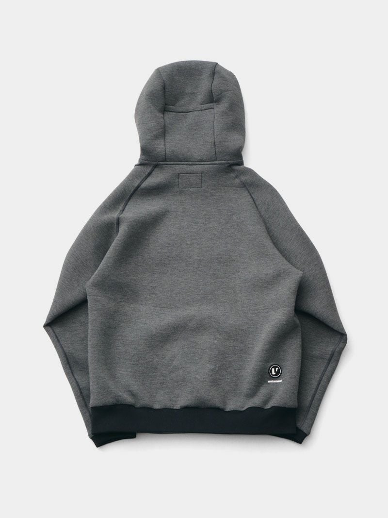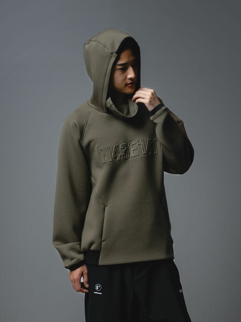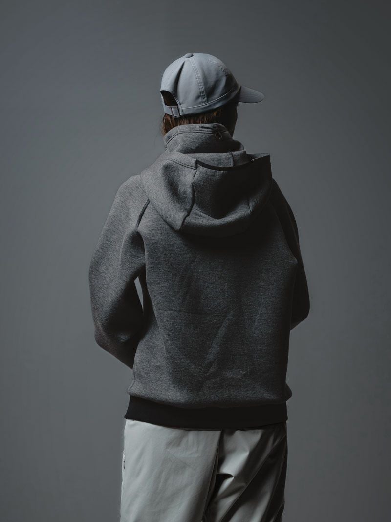 首元を大きく囲むネックウォーマータイプの首周りで、保温性を確保しながら存在感のあるプルオーバーパーカー。