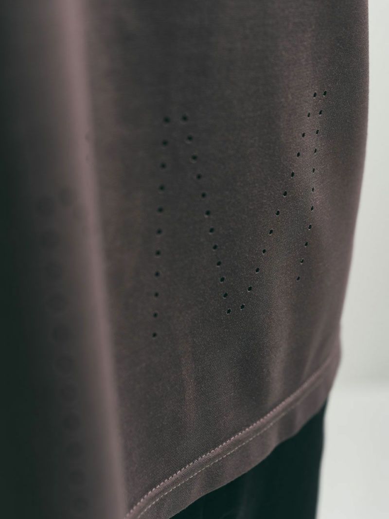 ゆったりとしたサイズ感が体のラインをカバーするのと同時に、生地と地肌の間に生まれる空間が大きく接地面が少ないため、ストレスのない着心地。カジュアル感を和らげるデザイン仕様で、ラフすぎないコーディネートが可能。
