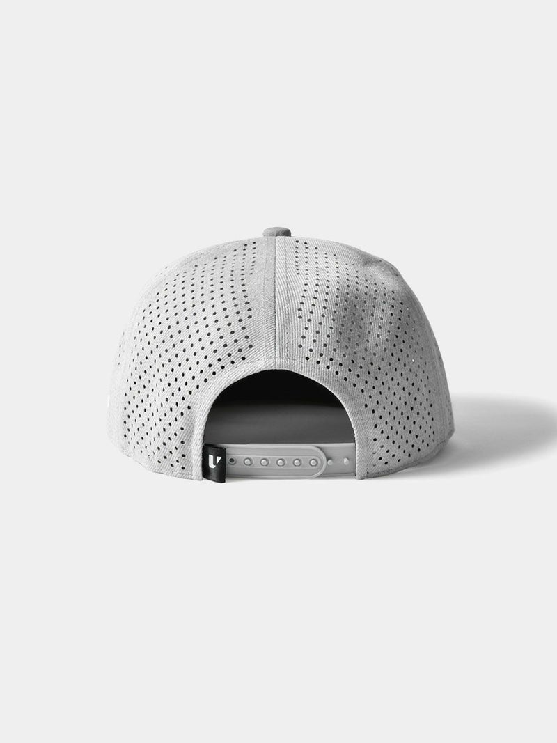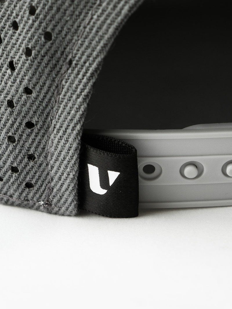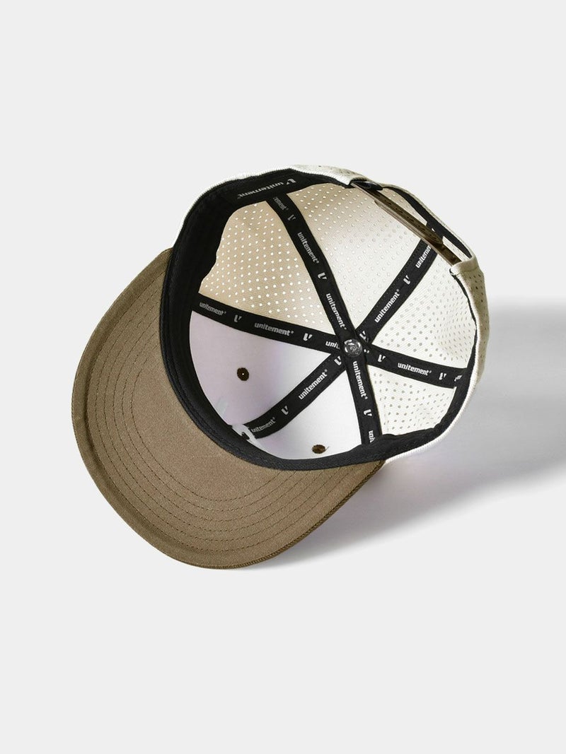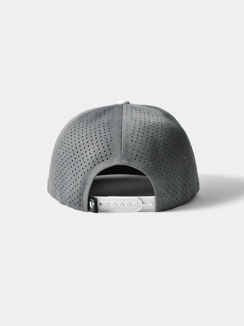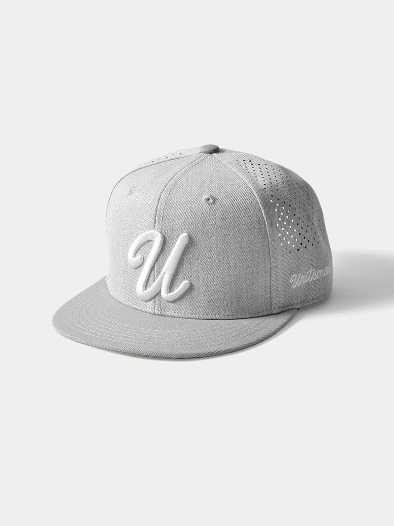パンチング加工を施して通気性を高めた、クラシックなアルファベットが特徴的なゴルフキャップ。