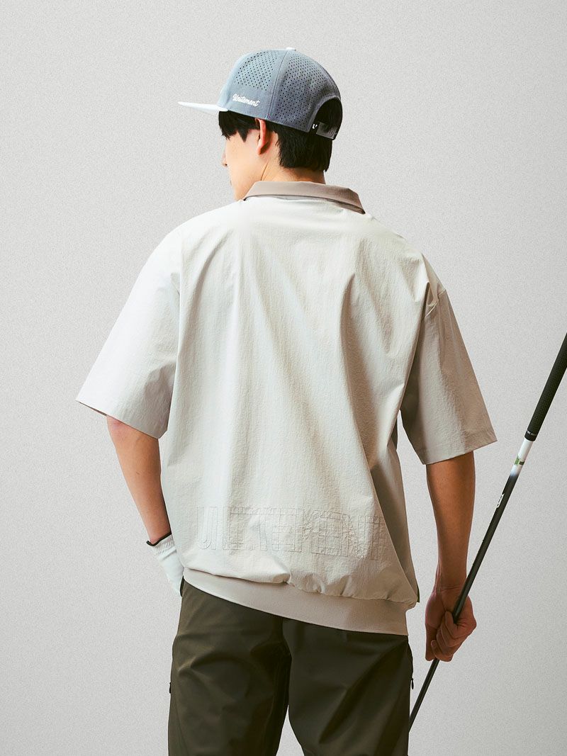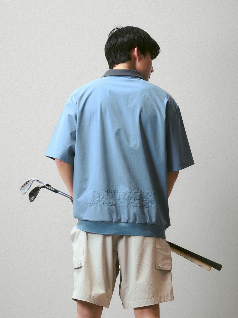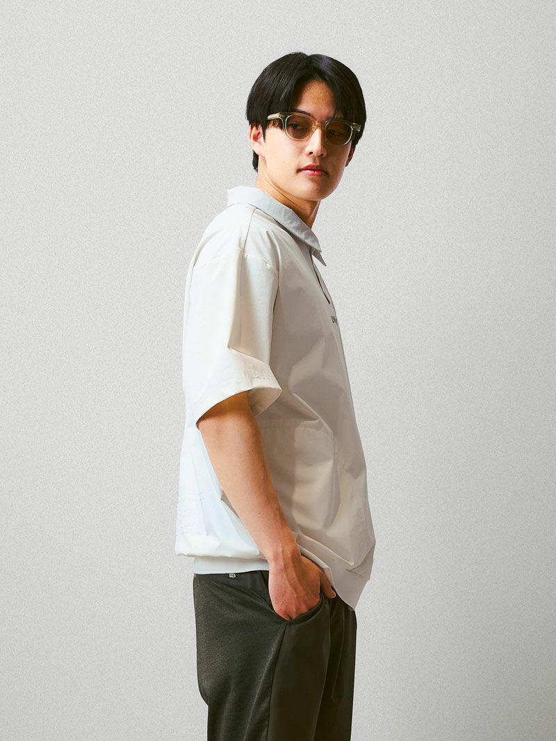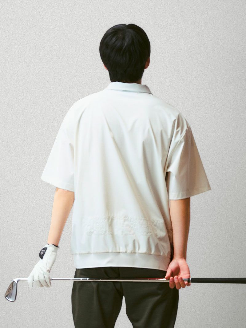 肌に優しいサラッとした感触に加え、二方向への優れた伸縮性を持ち、吸湿速乾性に優れています。 引裂きや摩耗に強く、表面には微細なシボ加工を施しているので、柔らかな手触りながらも適度なハリ感があり、毛玉ができにくく、シワになりにくいためお手入れも簡単。 両脇に菊穴、裾部分にはリブを配し、ルーズフィットでボックスカットに仕上げた、機能性とファッション性を兼ね備えたゴルフシャツです。