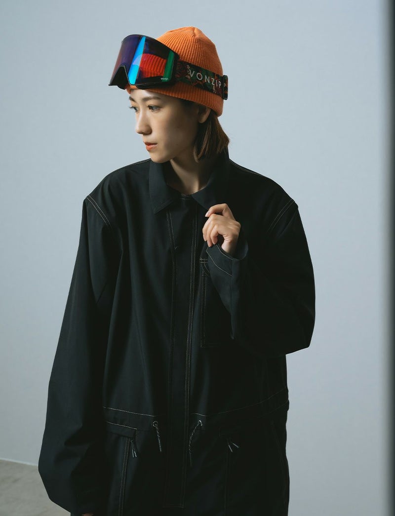 私たちが製作するスノーボードウェアは、水の侵入を防ぐ「耐水圧」は 10,000mm、汗等の水蒸気を逃がす「透湿」は 15,000g と、雪山で快適に活動できる必要最低限以上の数値をクリアした生地を使用しています。