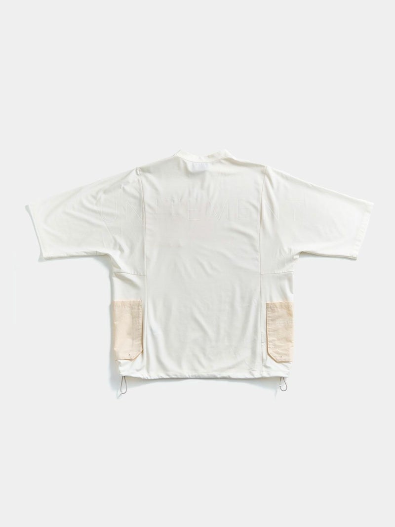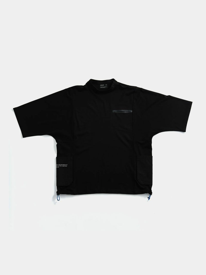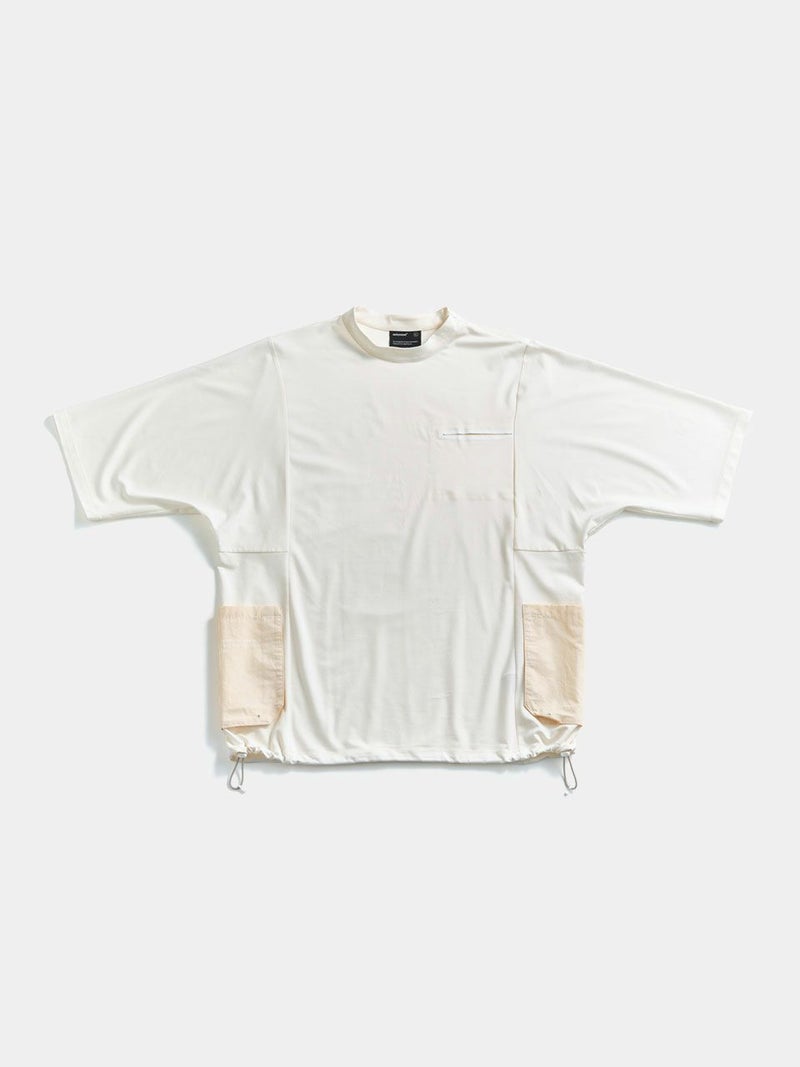 ゆったりとしたサイズ感が体のラインをカバーするのと同時に、生地と地肌の間に生まれる空間が大きく接地面が少ないため、ストレスのない着心地。モックネック仕様と裾の絞りで、カジュアル感を和らげつつコーディネートが可能。
