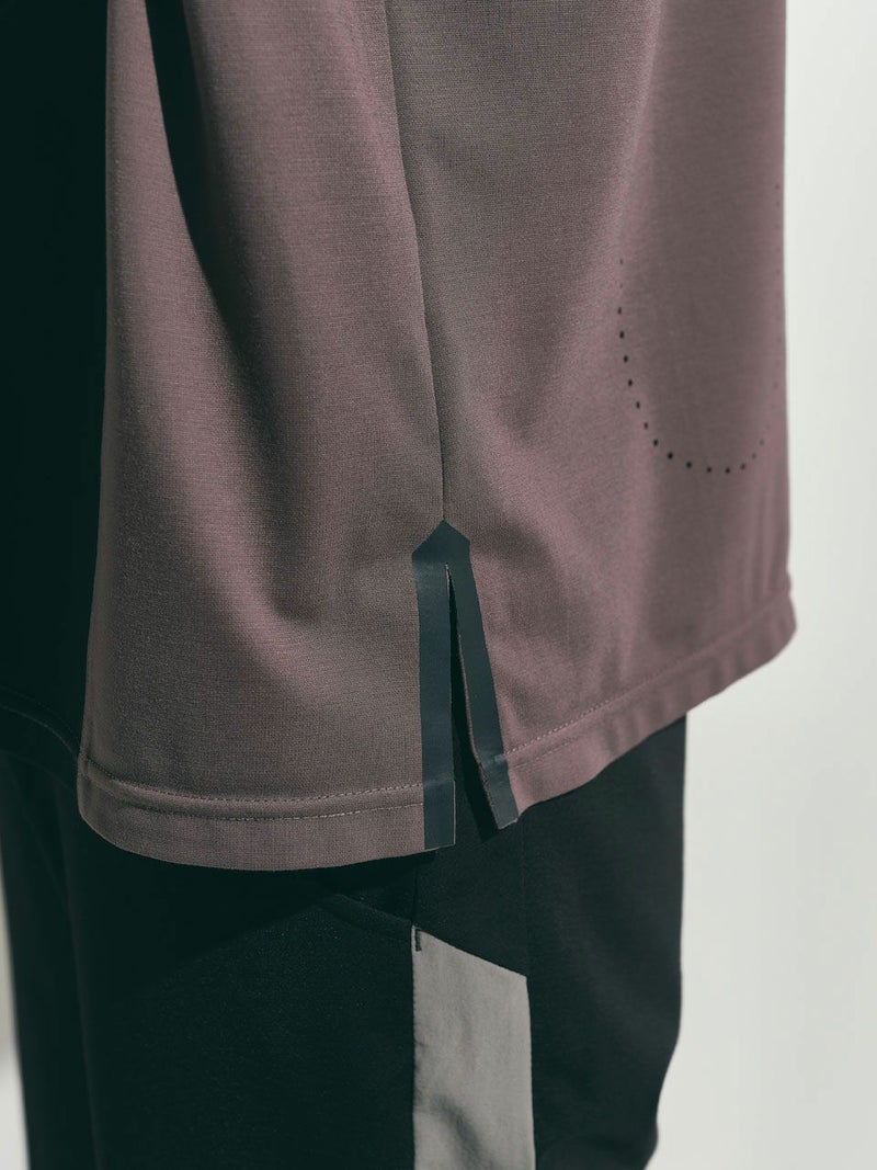 ゆったりとしたサイズ感が体のラインをカバーするのと同時に、生地と地肌の間に生まれる空間が大きく接地面が少ないため、ストレスのない着心地。カジュアル感を和らげるデザイン仕様で、ラフすぎないコーディネートが可能。