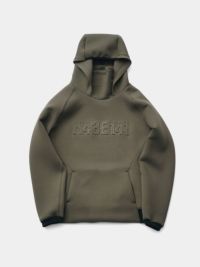 首元を大きく囲むネックウォーマータイプの首周りで、保温性を確保しながら存在感のあるプルオーバーパーカー。