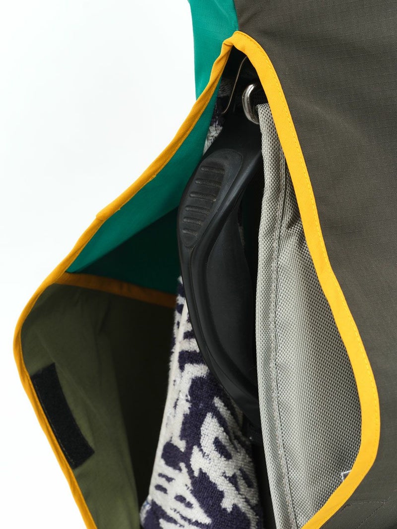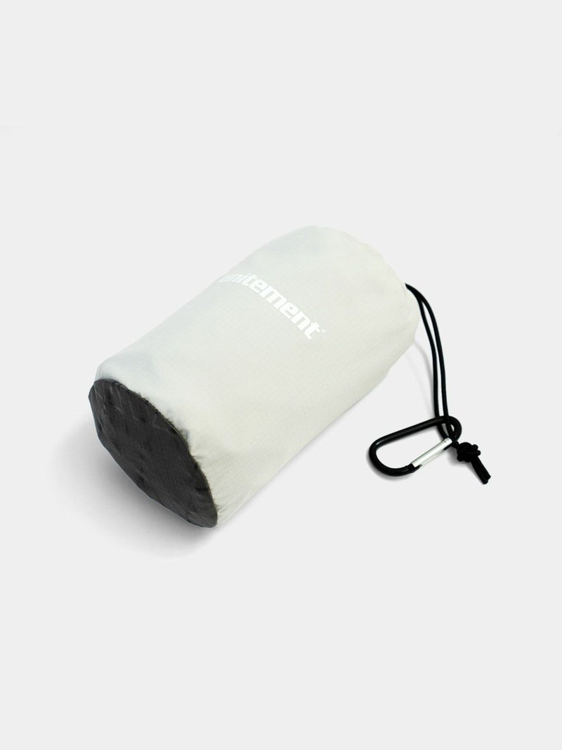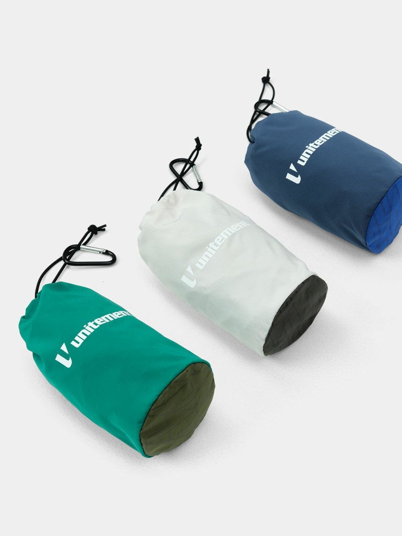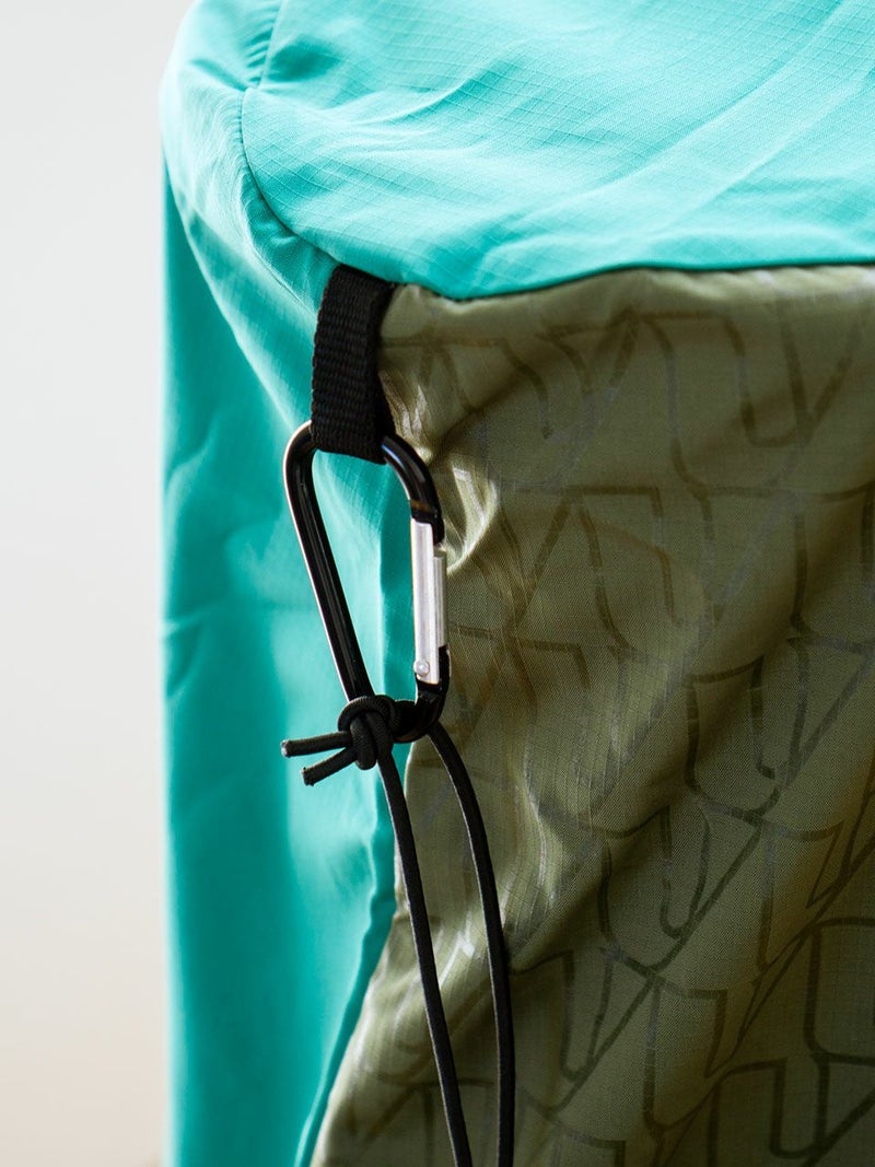 シンプルな設計で、使用しない時はコンパクトに収納できるパッカブルタイプ。カラビナが付属しているので、プレイ中はキャディバッグ等に取り付け携帯できます。