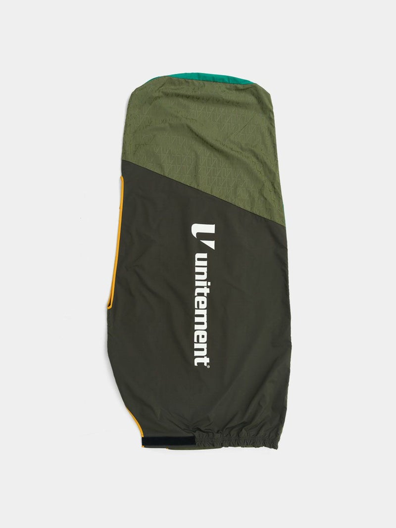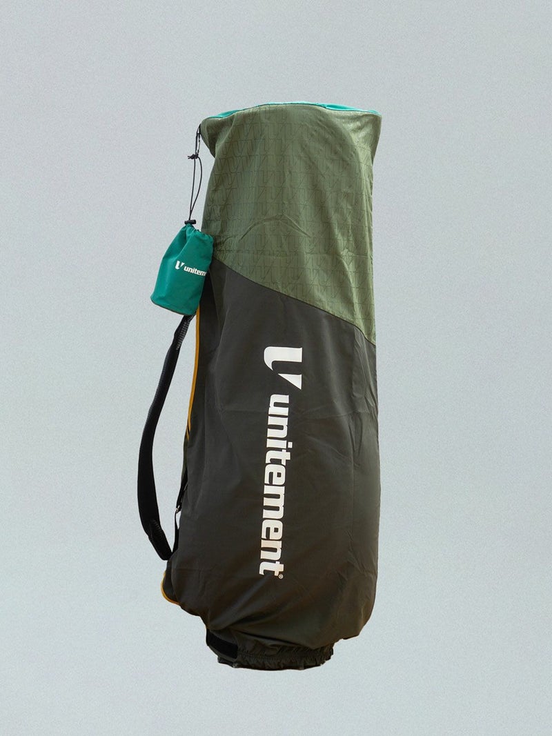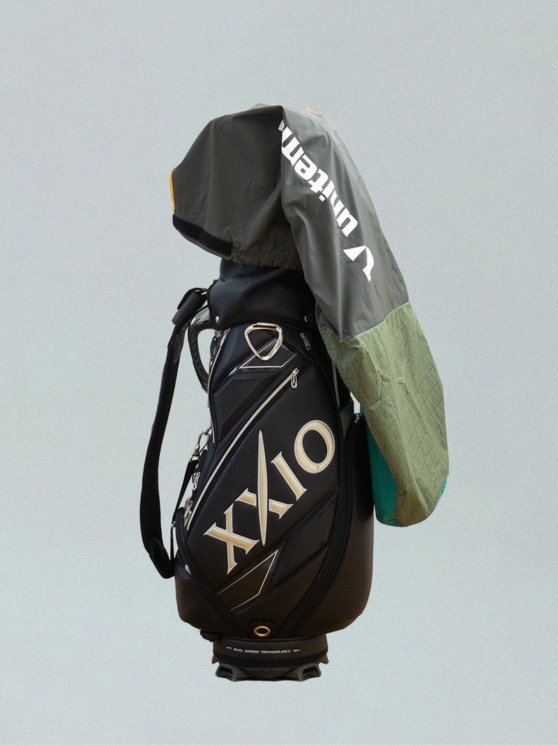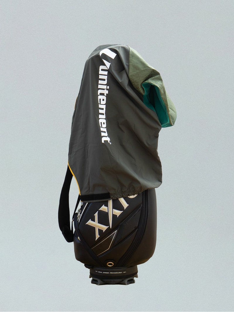 収納袋からすぐに取り出し、バッグを立てたまま、簡単にキャディバッグに取り付けが可能。収納袋をカバーに取り付けられるので紛失防止に役立ちます。
