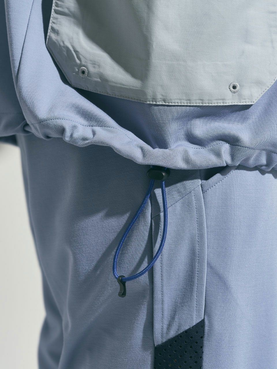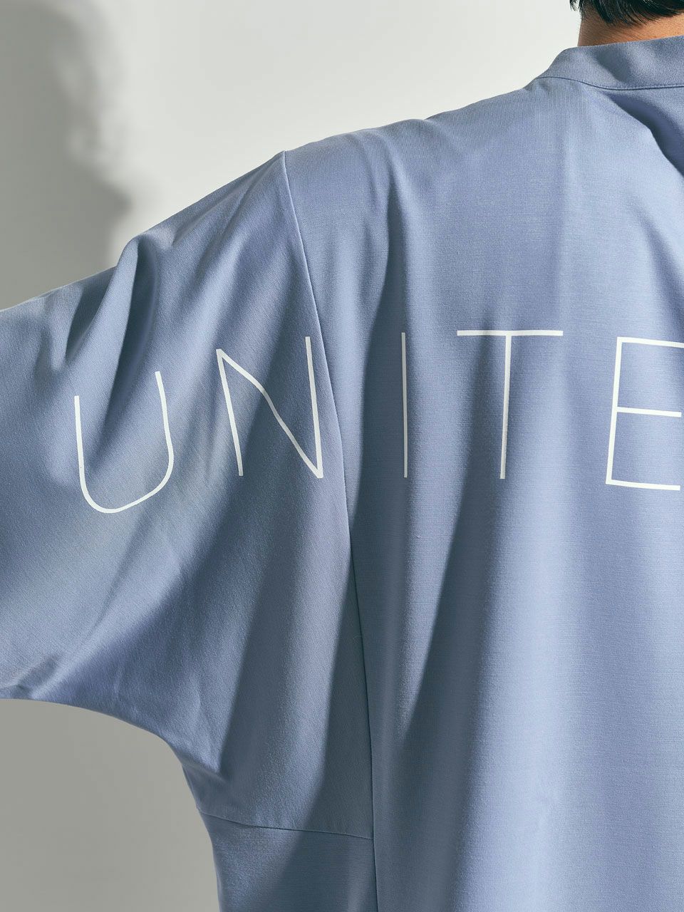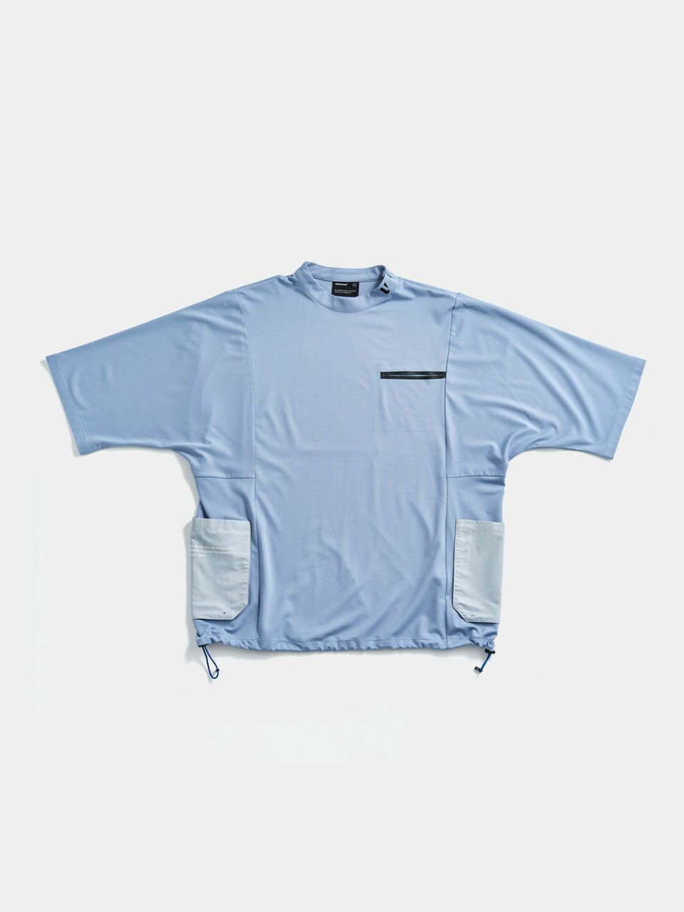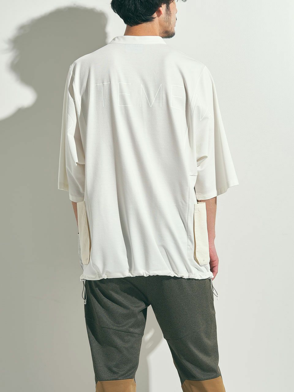 ゆったりとしたサイズ感が体のラインをカバーするのと同時に、生地と地肌の間に生まれる空間が大きく接地面が少ないため、ストレスのない着心地。モックネック仕様と裾の絞りで、カジュアル感を和らげつつコーディネートが可能。