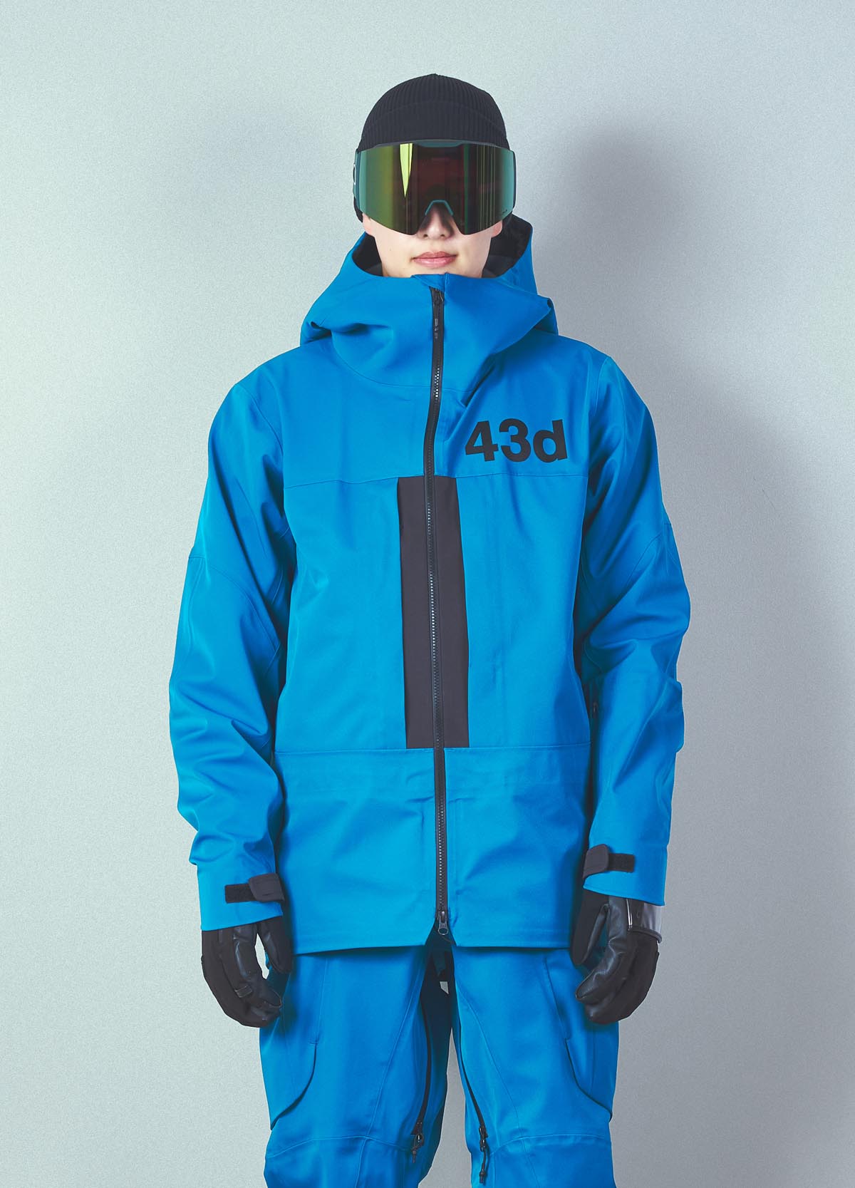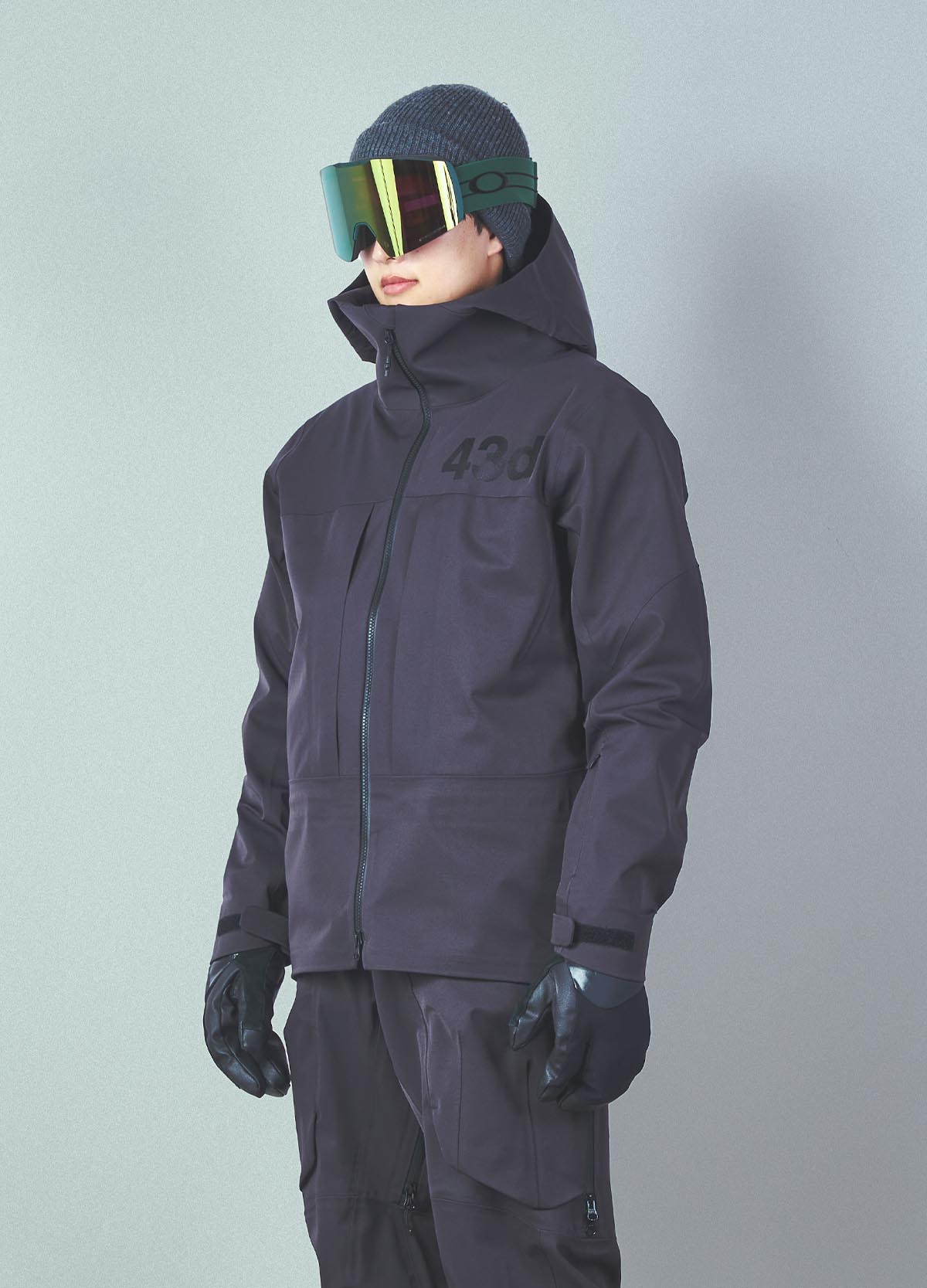 43degreesの代表的モデル「ピークジャケット」。これを起源とする従来のモデル群は、 「身支度の軽減」と「保温力」を重視し、厳冬期の多様な環境で快適に過ごせるよう設計されてきました。 気温差や場面、着用者を選ばない汎用性と、部屋着のような手軽な重ね着も特徴でした。 それに対し、この新しいモデルは、あえて従来の保温性への重点を抑え、バックカントリーでの活動に特化。 よりアクティブなシーンに振り切ったモデル。